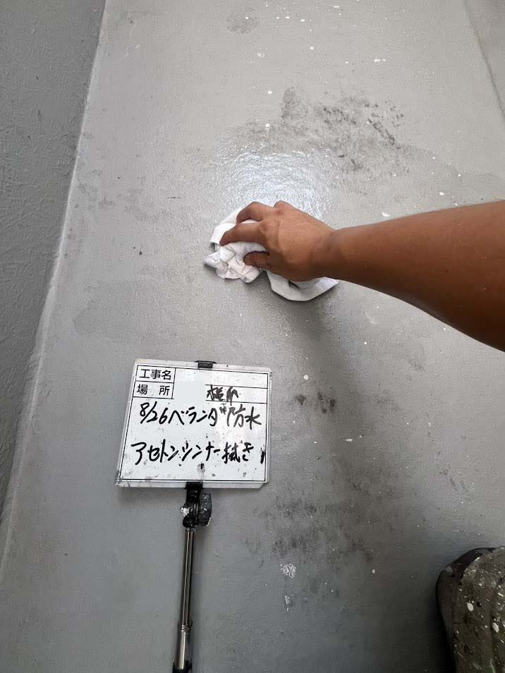 ベランダ防水アセトンシンナー拭き